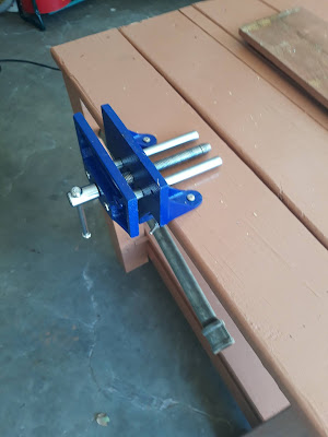I did upgrade the outside work bench yesterday; it now has a vise on it. 😊